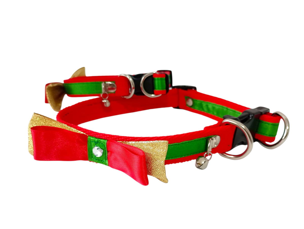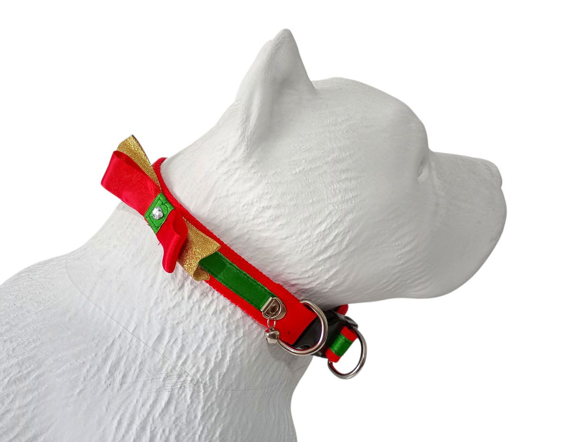 COLLAR REGULABLE CON BROCHE, MOÑO Y CASCABEL.